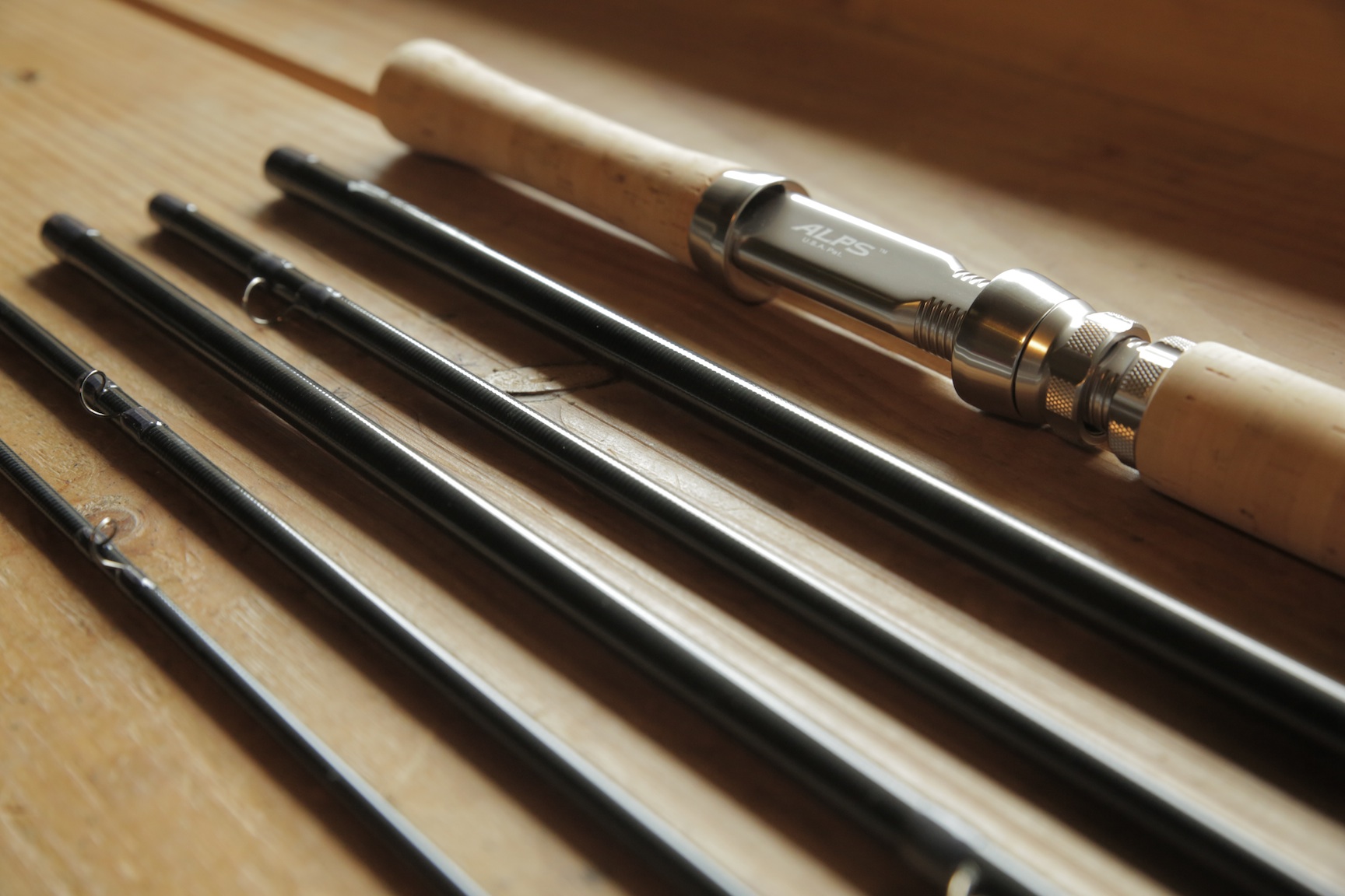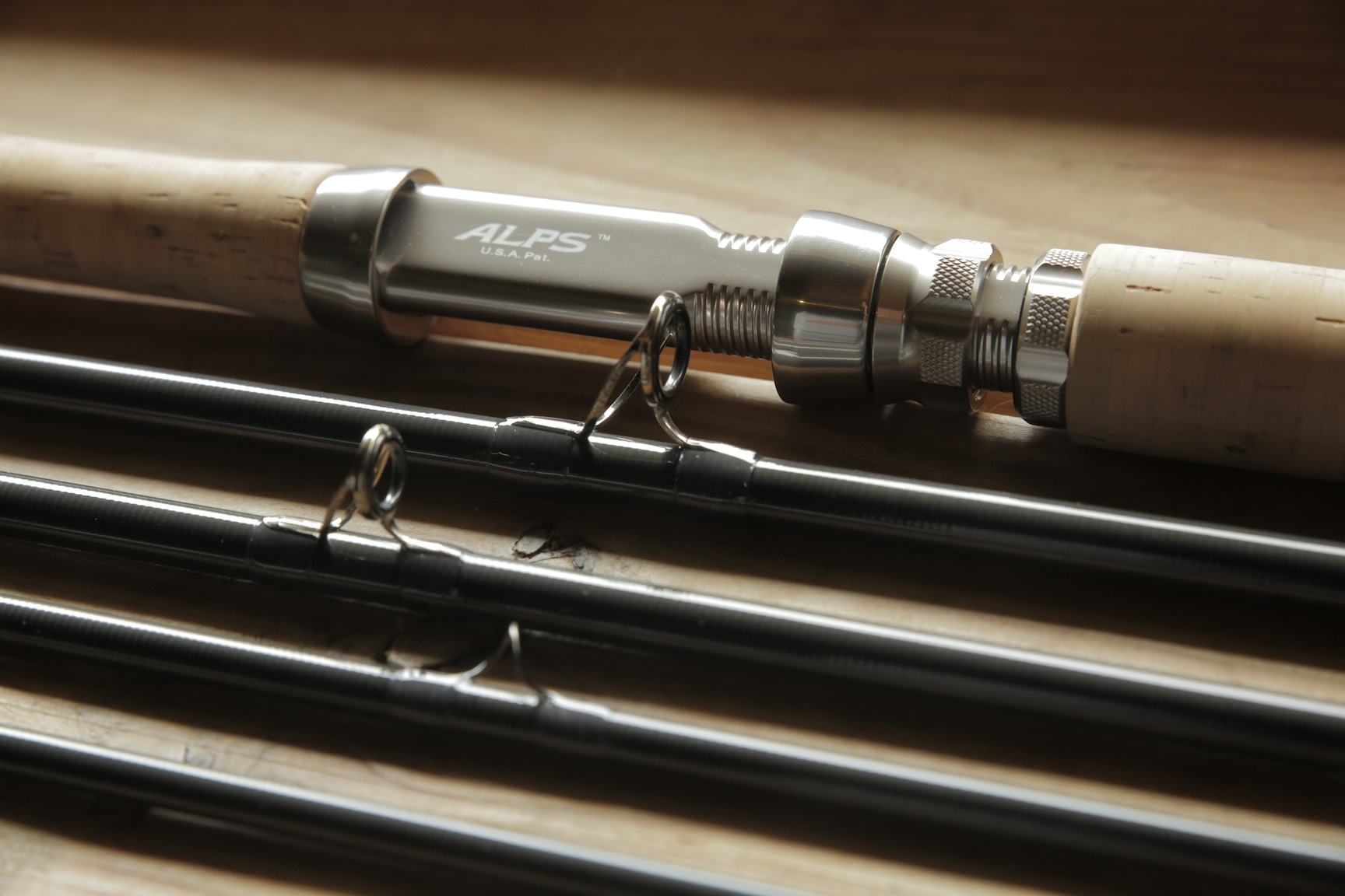 Cette superbe DH 13 en soie de #7 est montée avec des stripping guides Alps Titanium des snakes brand Original ligaturés en soie naturelle Super de chez Pèche à soie. Le liège est un beau flor Portugais, le porte moulinet un Alps Trilock.